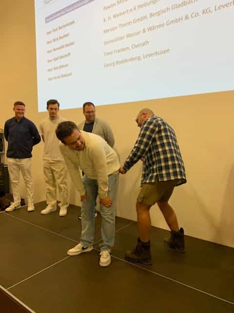 Am 14. März 2025 fand im Metabolon in Lindlar die feierliche Lossprechung für die erfolgreichen Gesellen statt, organisiert von der Kreishandwerkerschaft. Dabei wurden die Azubis geehrt, die ihre Gesellenprüfung erfolgreich abgelegt haben, und mit einem herzlichen Klaps auf den Po von ihrem Meister, symbolisiert durch einen Holzhammer, in das Gesellenleben entlassen.